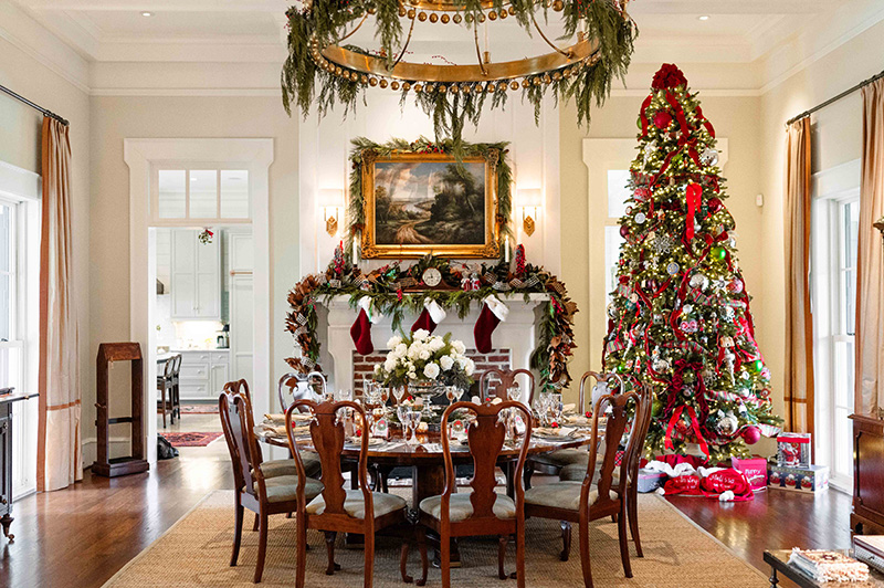 “Her style in general is what she calls ‘collected traditional,’ and it’s very inspired by the English countryside,” Cook says. “So we played off that in selecting the holiday accents.”