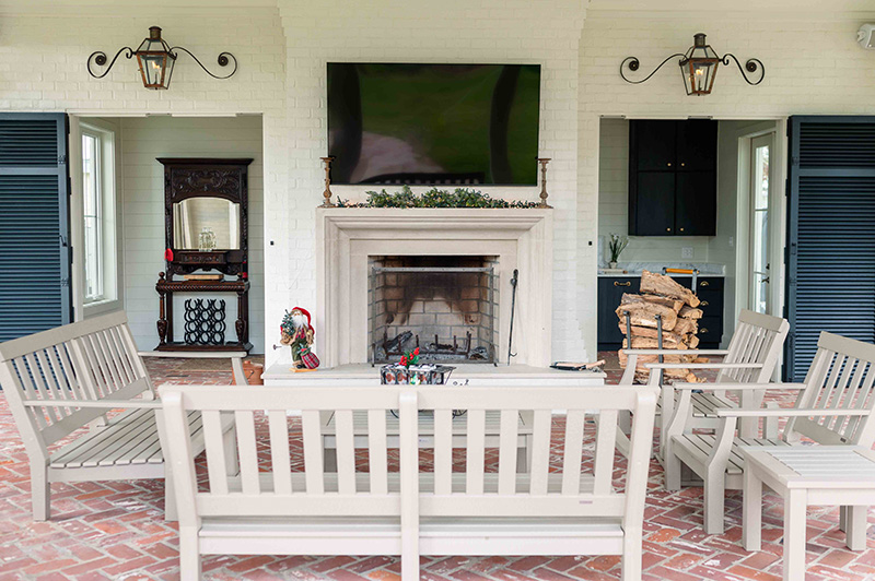 The party’s decorating details were layered upon a foundation of antique furnishings and pieces built to honor timeless design. Among the furnishings in the living room and keeping room are pieces from Theodore Alexander and Holland & Company, and chandeliers are from Circa Lighting, Restoration Hardware, and Bevolo Lighting.