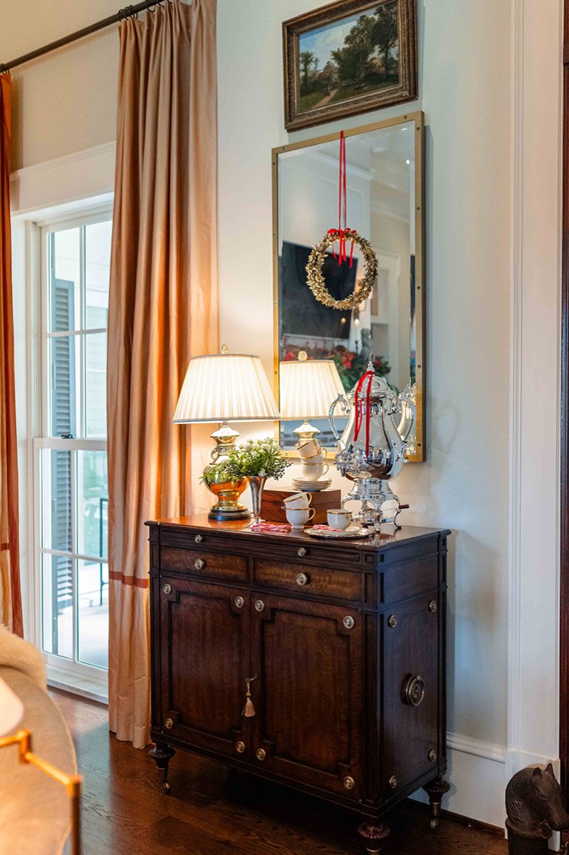 “Her style in general is what she calls ‘collected traditional,’ and it’s very inspired by the English countryside,” Cook says. “So we played off that in selecting the holiday accents.”