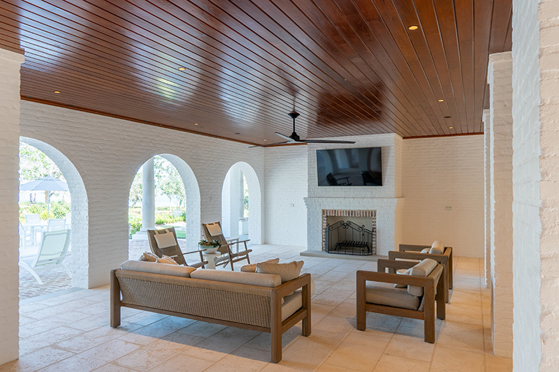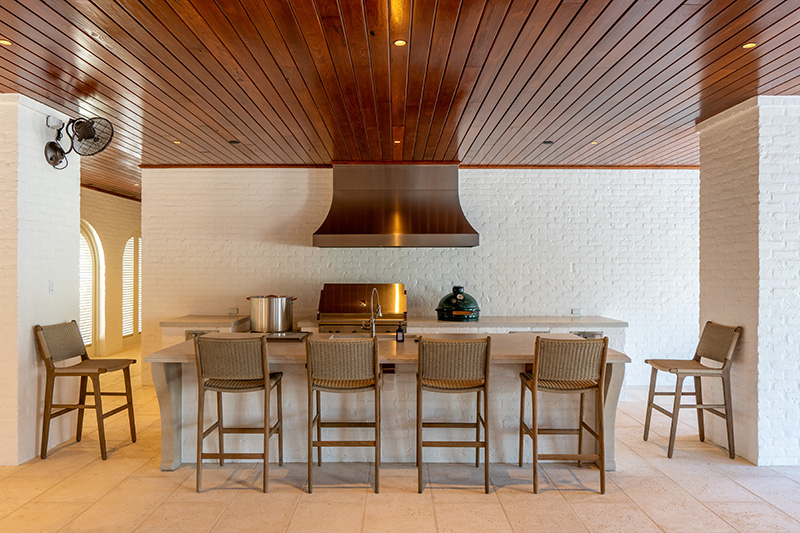 With Shipman based in Florida, Buildhaus was able to establish a beautifully managed relationship, although the designer had limited site visits. Through Hunter Desporte’s detail-oriented communication and scheduling, and Chase Denmark’s management of sub-contractors and overall construction and finishing detail, the trio was committed to a collaborative approach and dedicated to creating a timeless legacy home. “It starts with the water-front setting and continues with the spectacular hardscape and landscape design. The architecture is breathtaking, and the interior spaces are the icing on the cake. They don’t compete, but they certainly stand on their own,” Shipman concludes.