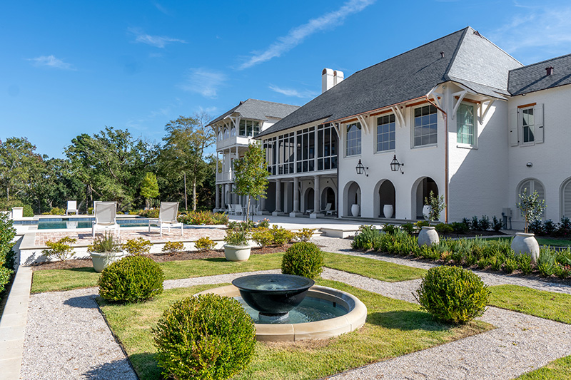 This year’s frontrunners, Hunter Desporte and Chase Denmark of Buildhaus constructed a majestic home, Shallow Point Manor, situated on a 100-acre family compound on the Back Bay of Gulfport. Designed by architect George Denmark, the classic Louisiana-lowland-style home is heavily influenced by A. Hayes Town, who mentored Denmark. Trusted by the homeowners, the architect, whose reputation and talent fuel his impressive client list, has created several designs for the family in previous years and continues to produce future family projects. Shallow Point Manor, in particular, is a shining example of his work.