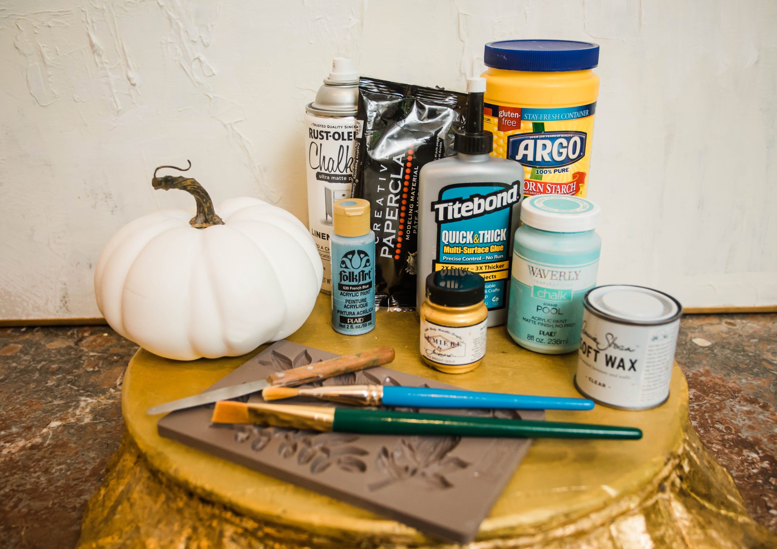 1. Paint the pumpkin with white chalk paint, and allow it to dry.