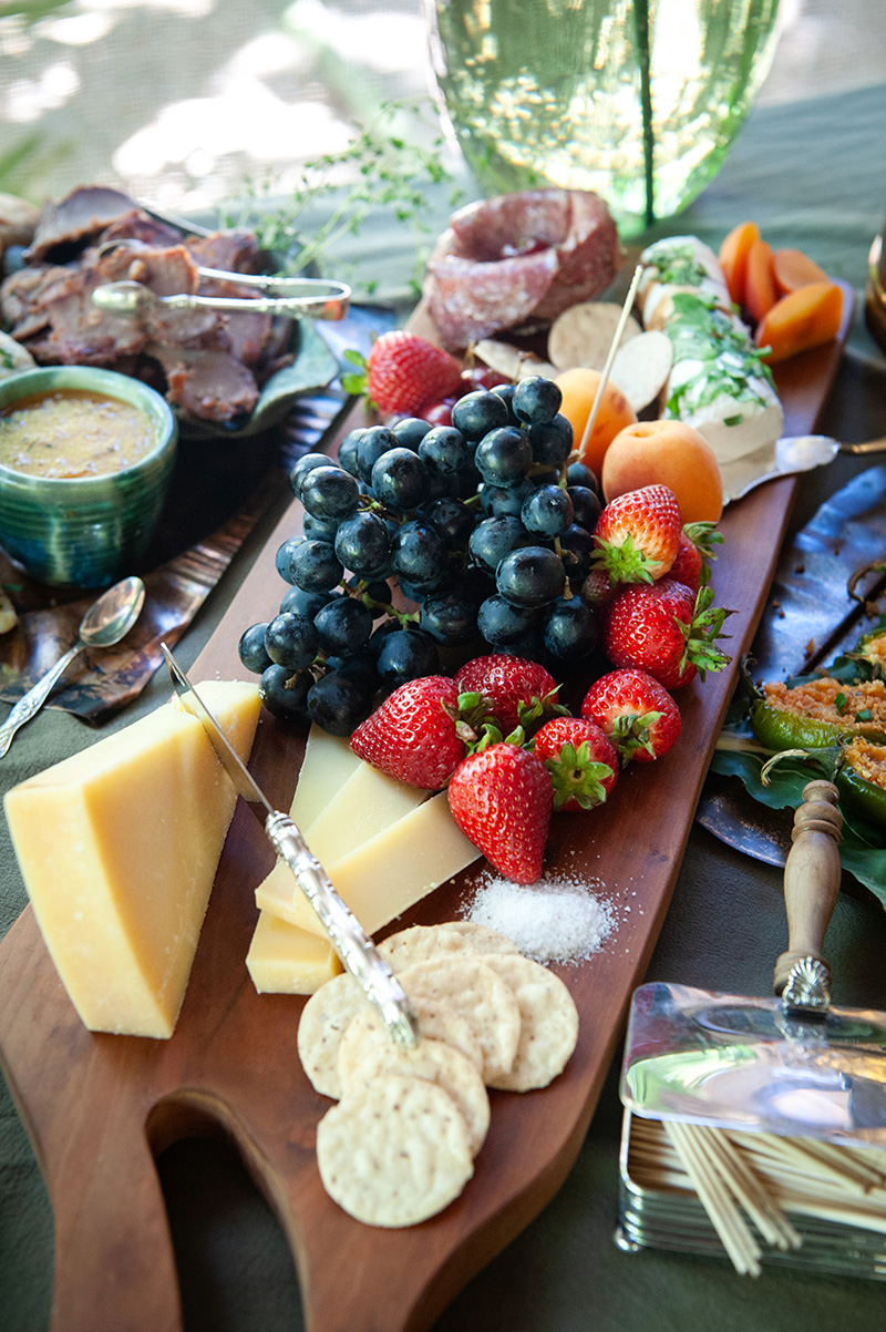 Goat Cheese and Parmesan Board with Strawberry Balsamic Vinegar and Truffle Salt