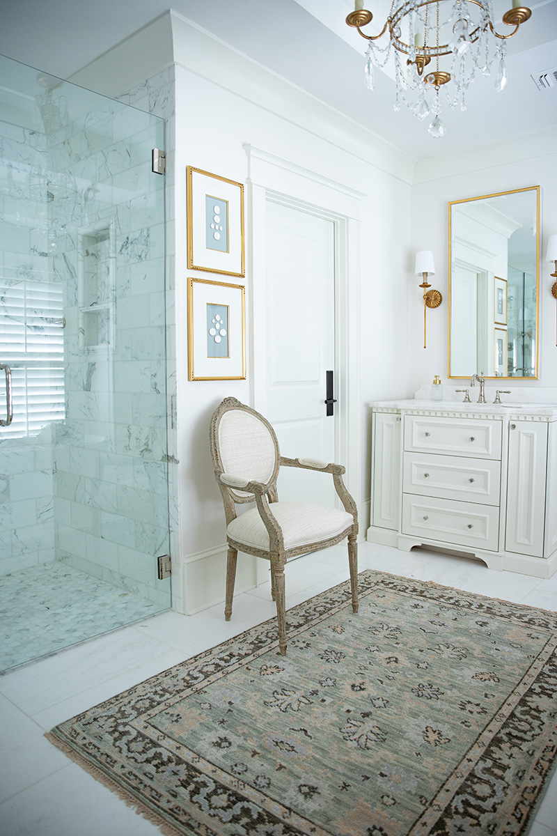 Jen’s style has a heavy European influence as she carefully and expertly mixes new and old elements that help tell the home’s story. Her father was an accomplished carpenter and long ago collaborated with Jen on several projects that remain in the house to this day, including a wall mirror in the master suite—a gift to her mother and a sweet memory of the two of them. Small childhood portraits hanging in the dining room are those of Jen’s grandparents who gifted Swan Hill, and a chair in the master bathroom was her sister’s vanity chair, now reupholstered. “A love of antiques and vintage pieces led me to shops that my sister and I frequented as she shared my passion for design and beautiful spaces, too,” she reminisces. “I was so fortunate to acquire many of the original art pieces as well as lighting fixtures from talented artisans I have worked with over the years.” She worked with RF Antiques in Fairhope, Alabama, to design unique bedside tables and a custom dresser by a craftsperson in Italy. “The entire home is a showcase, with beauty at every turn, both inside and out,” Lindsey notes. “Jen’s thoughtful selection and placement of furniture, artwork, and accessories brought the finishing touches, elevating the space to a stunning masterpiece.”