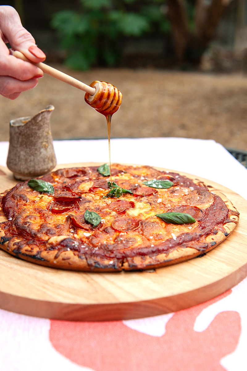 Homemade Pepperoni Pizza with Hot Honey