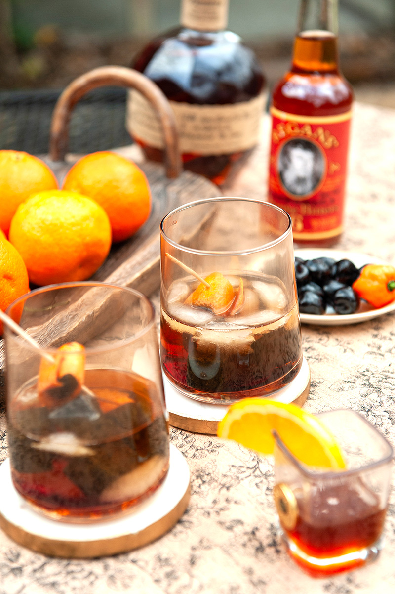 A zippy old fashioned featuring hot honey and orange bitters